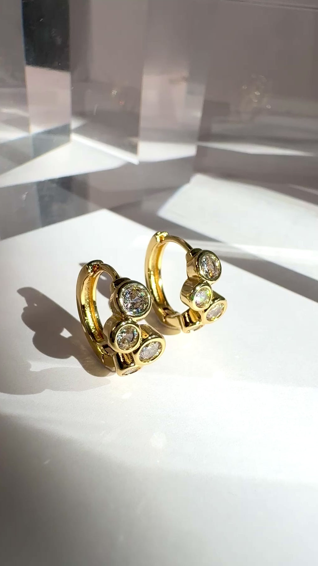 Facetted clear quartz huggie earrings, set to resemble small star constellations.