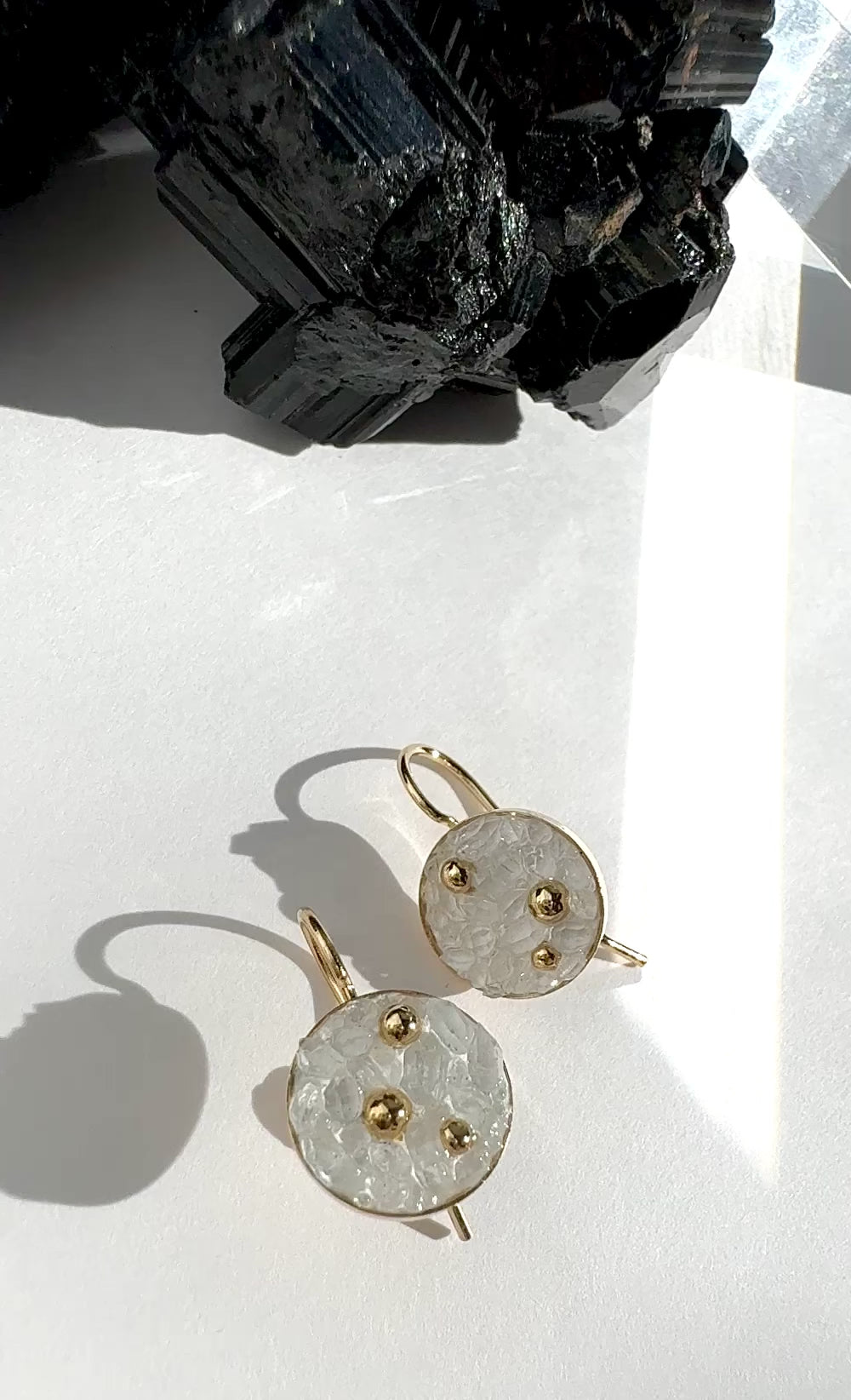Earrings that make getting ready easy while adding incredible sparkle. A simple drop earrings statement that captures the gleam of individual herkimer diamond quartz stones that have been meticulously nestled together with gold studs in a way that feels classic and modern.