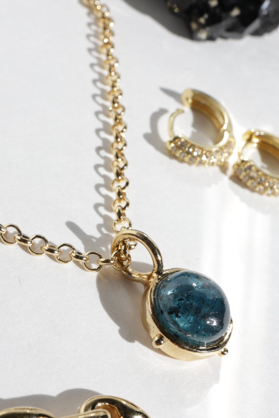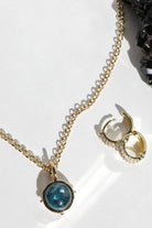 Framed by a Roman style bezel with small gold stud details, the pendant balances refined structure with the organic character of the stone. At 12mm, its scale makes it perfect for layering while still offering a distinctive point of focus.